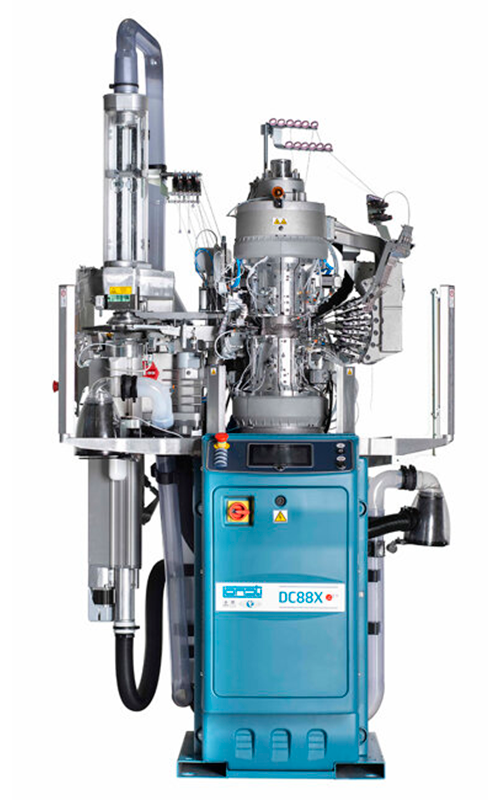 Máquina de duplo cilindro e alimentação dupla para produção de meias masculinas, femininas e infantis em canelado, liso, Links e Links Jacquard. Seleção de agulha do tipo atuador monomagnético para diferentes tipos de nervuras, Links e designs de Links Jacquard. Motor brushless integrado à coluna com movimento alternado com pêndulos variáveis para calcanhar e ponta. Dois pontos de seleção no lugar dos selecionadores e da pá de descida da agulha. Dispositivo de extração de meia de rolo de alta resistência e fecho de biqueira com conexão tradicional do tipo Lonati SbyS. Programação de artigos, tamanhos e modelos de malha usando um computador pessoal e o poderoso pacote de software Digraph 3+. Teclado com visor gráfico para seleção de itens e outras operações. Possibilidade de conexão ao NAUTILUS para coleta de dados de produção e monitoramento em tempo real da sala de máquinas. Disponível em 4” ½ e calibres de 5 a 8.